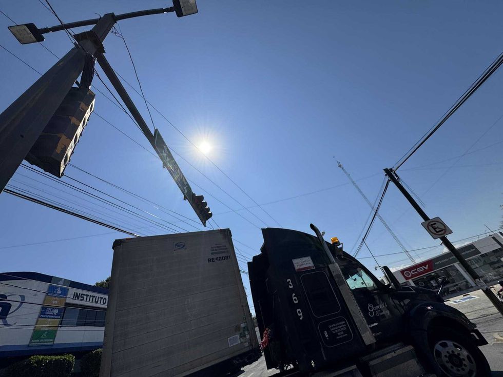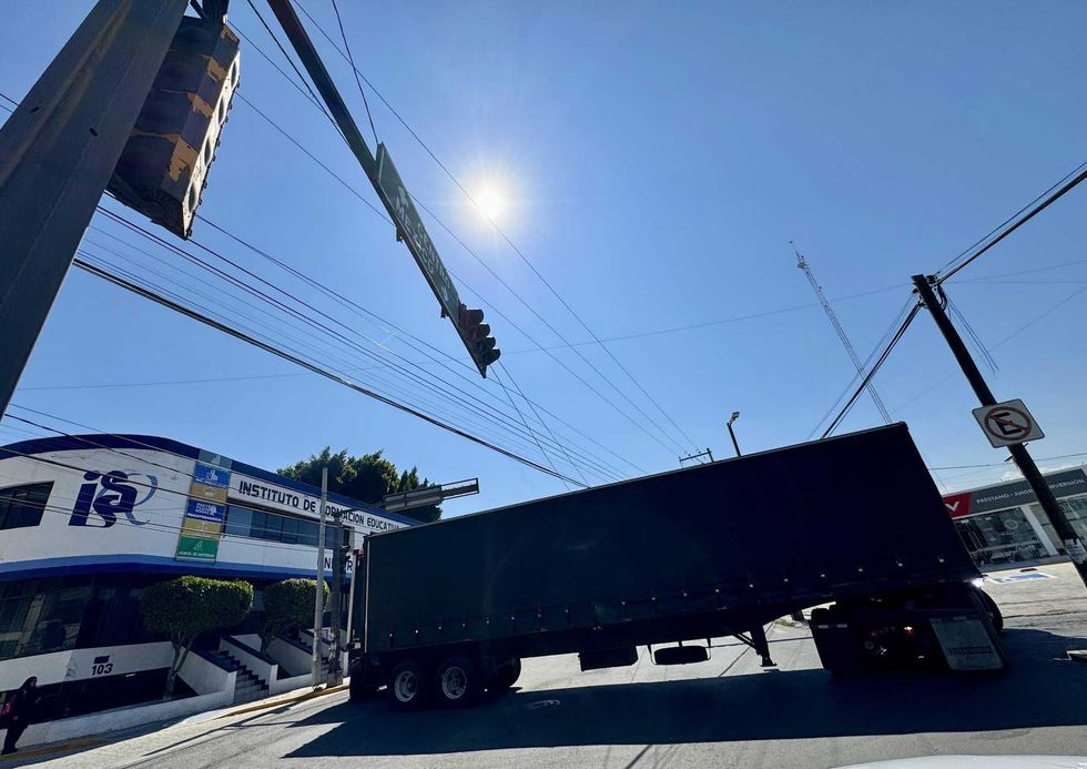 Conductor desenganchó una de las cajas del remolque para liberar maniobra bajo supervisión de policía municipal en zona centro de San Juan del Río.