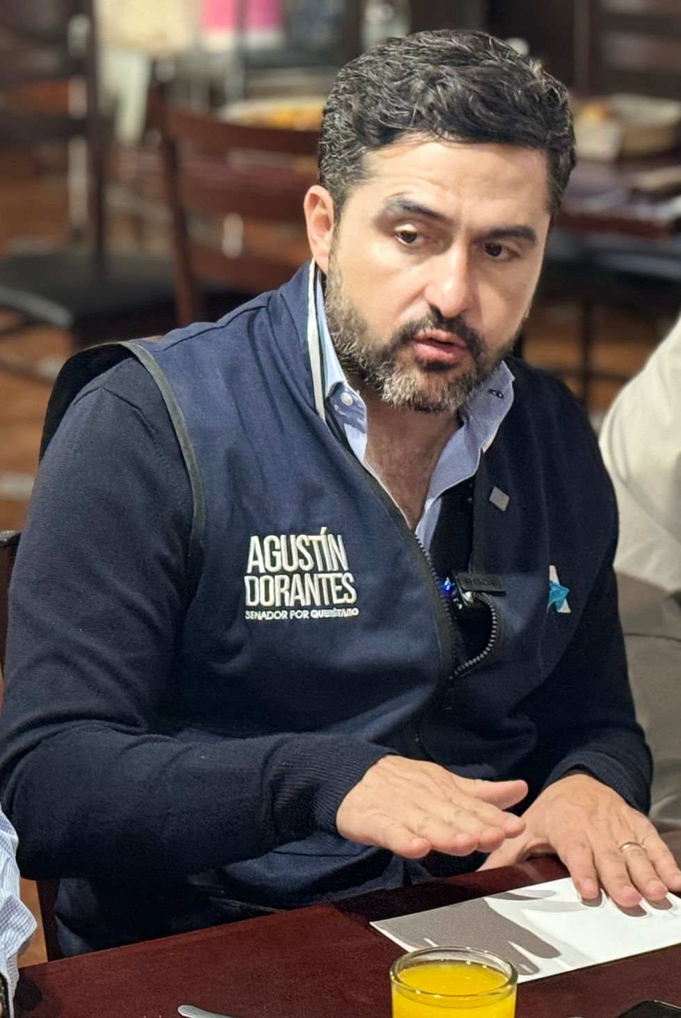 Agustín Dorantes Lambarri, senador del PAN por Querétaro, durante entrevista en San Juan del Río sobre su aspiración a la gubernatura.