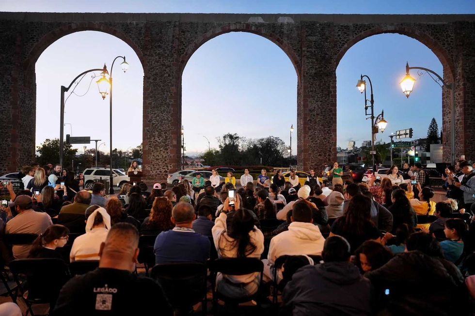Los Arcos de Querétaro iluminados con motivo del Día Mundial de la Concientización sobre el Autismo este 8 de abril.